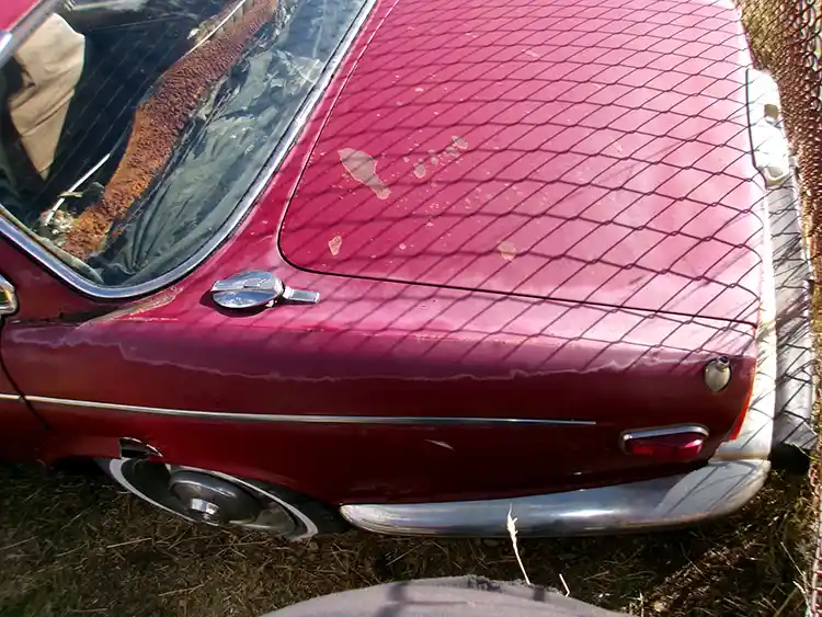 This classic red Jaguar has dual tanks.